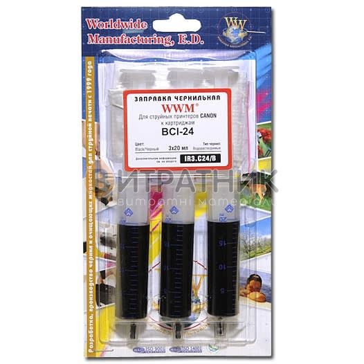 Заправний набір WWM для Canon BCI-24 (3 x 20мл) 3шт x 20мл Black водорозчинне (IR3.C24/B)