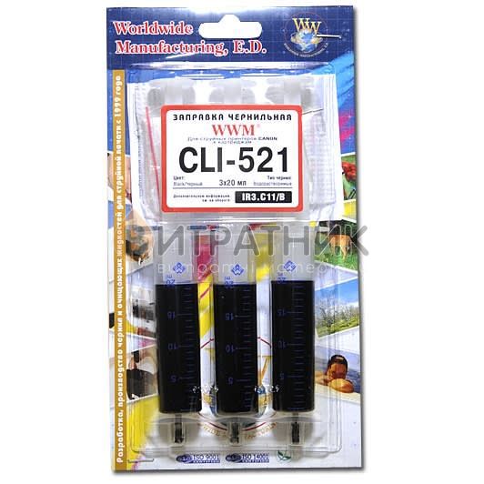 Заправний набір WWM для Canon CLI-521 (3 x 20мл) 3шт x 20мл Black водорозчинне (IR3.C11/B)