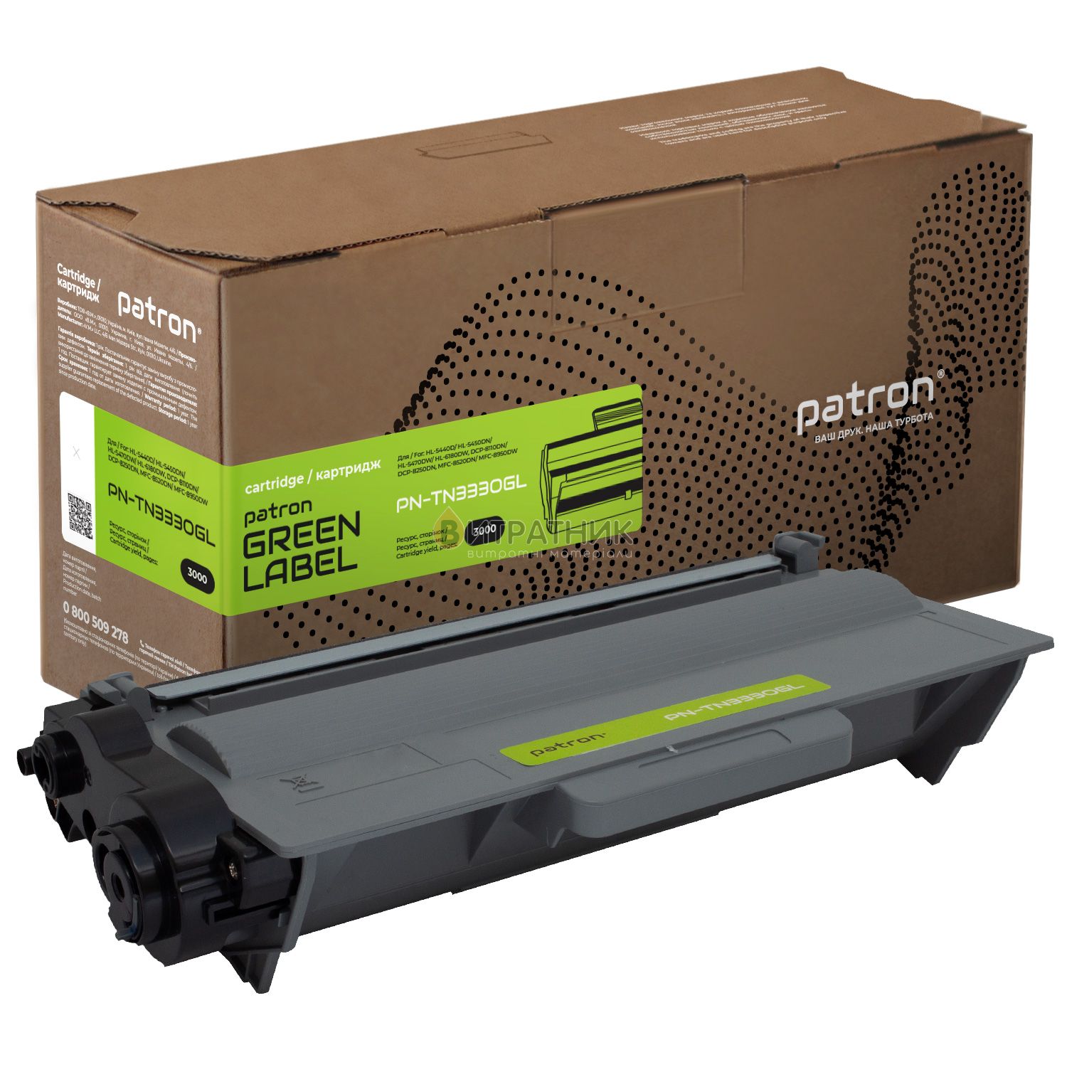 Тонер-картридж сумісний Brother TN-3330 Green Label Patron (PN-TN3330GL)
