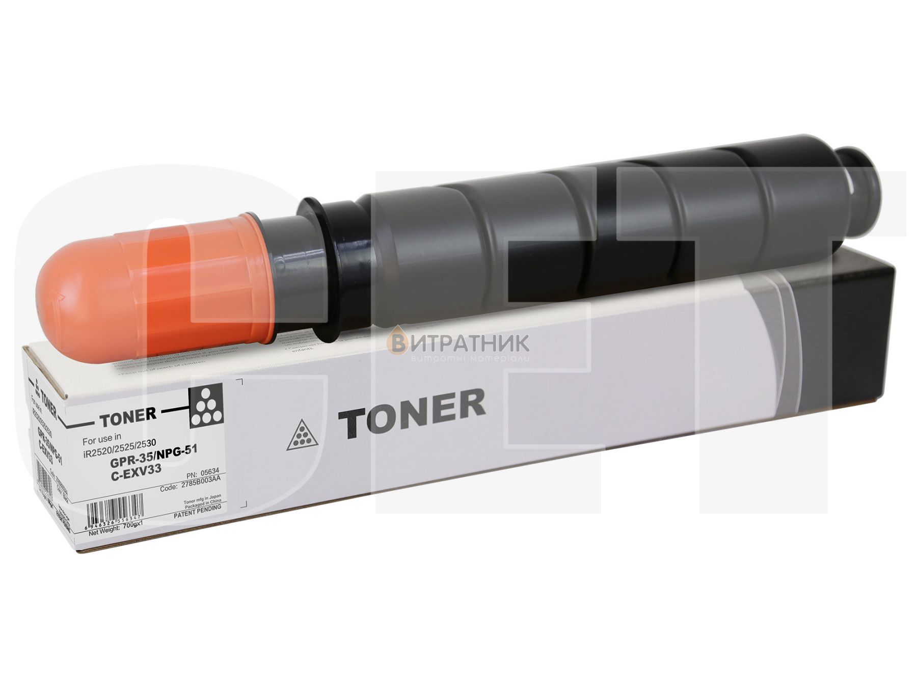 Норма друку сумісного картриджа тонер C-EXV33 для Canon iR-2520 туба 700 г Gold-серия CET для сторінок А4 з заповненням 5% становить 14600 аркушів.