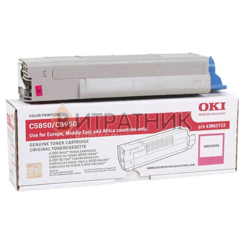 Картридж оригінальний з заправкою OKI C5850 / 43865742 / 43865722 Magenta має ресурс друку 6000 сторінок.