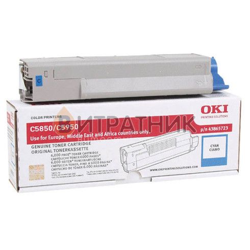 Картридж оригінальний з заправкою OKI C5850 / 43865743 / 43865723 Cyan має ресурс друку 6000 сторінок.