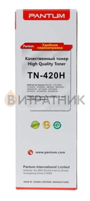 Придбати оригінальний Комплект для заправки картриджа PC-420H (1 тонер + 1 чіп) Pantum (TN-420H) без переплат та з гарантіями