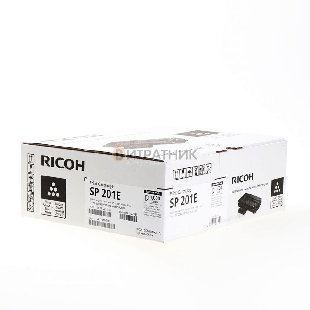 Максимальний ресурс друкування Картридж SP201E Ricoh (407999) становить 1000 сторінок. При виробництві витратника у пристрій було заправлено високоякісний тонер ТМ «Ricoh». Колір мікрогранул — Black .