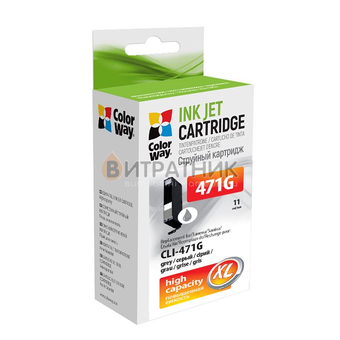 Цей Картридж струменевий ColorWay сумісний з Canon CLI-471G (CW-CLI-471G) випускається компанією ColorWay , яка для створення таких витратних матеріалів використовує власне виробництво, розробки та технології.