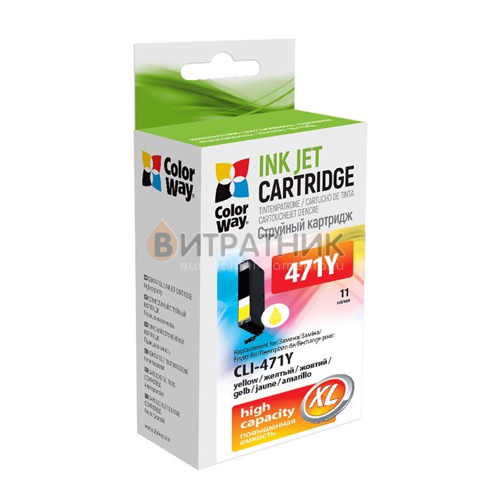 Цей Картридж струменевий ColorWay сумісний з Canon CLI-471Y (CW-CLI-471Y) випускається компанією ColorWay , яка для створення таких витратних матеріалів використовує власне виробництво, розробки та технології.