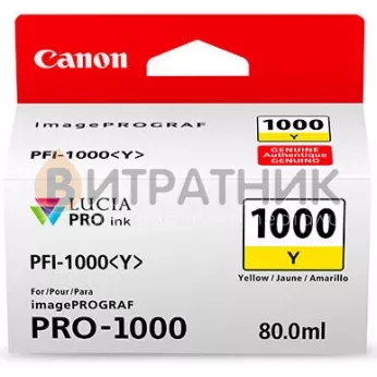 - Картридж Canon imagePROGRAF Pro-1000 PFI-1000 Yellow (0549C001)
