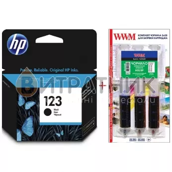 Картридж HP Deskjet 2130 HP №123 Black + Заправочный набор Black (Set123B-inkHP)