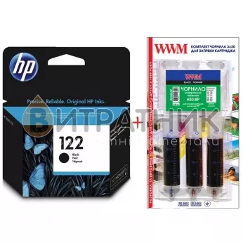 - Картридж HP DJ 1050/3050 №122 Black + Заправочный набор Black (Set122B-inkHP)