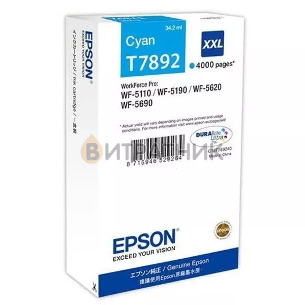 Картридж T789240 XXL блакитний Epson (C13T789240) випускається компанією Epson, яка для створення таких витратних матеріалів використовує власне виробництво, розробки та технології.