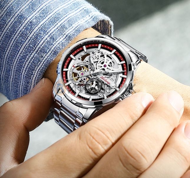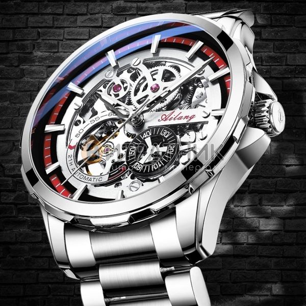 Стильные мужские часы Ailang Sceleton отличаются оригинальным дизайном. Прямые линии, острые края и эксклюзивно сделанный корпус придают изделию роскошный вид. Благодаря такому аксессуару у вас появится уникальная возможность удачно расставить акценты в созданном вами образе. Вам стоит лишь поднять руку, чтобы что-то показать, как глаза всех присутствующих будут прикованы к вашим элегантным часам.