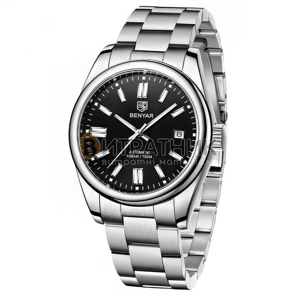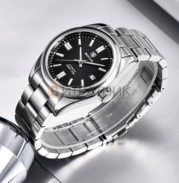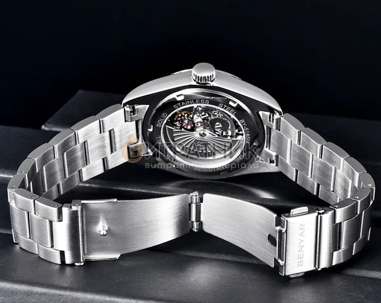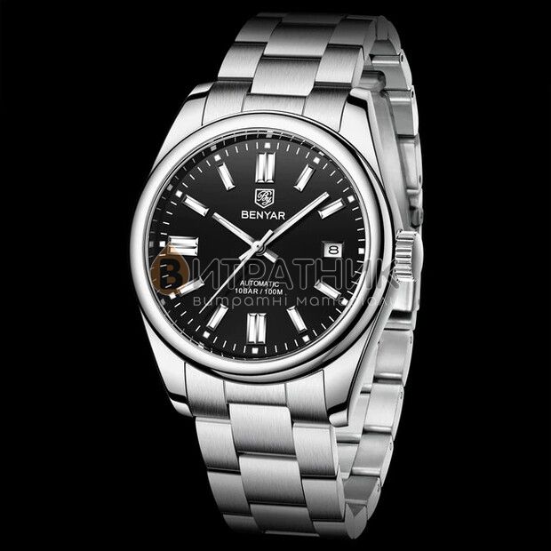 Стильные мужские часы Benyar Automatic 10 BAR отличаются оригинальным дизайном. Прямые линии, острые края и эксклюзивно сделанный корпус придают изделию роскошный вид. Благодаря такому аксессуару у вас появится уникальная возможность удачно расставить акценты в созданном вами образе. Вам стоит лишь поднять руку, чтобы что-то показать, как глаза всех присутствующих будут прикованы к вашим элегантным часам.