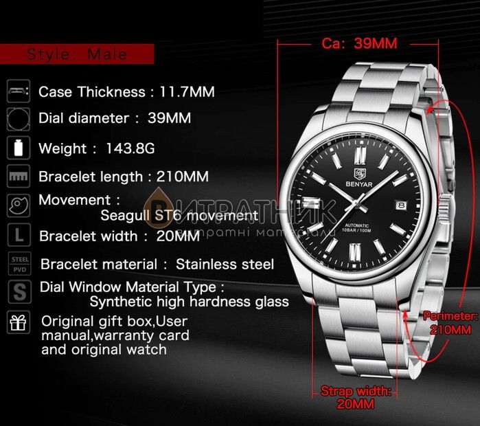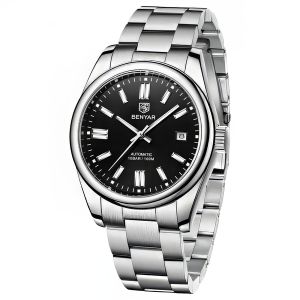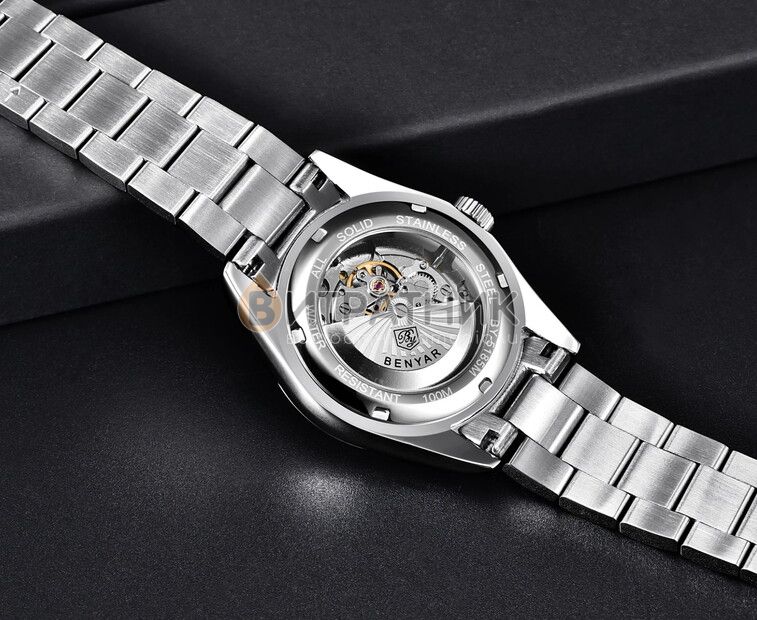 Дизайнеры бренда Benyar уделили особое внимание созданию циферблата. Цвет модели подобран достаточно скрупулезно, чтобы индексы/цифры отображались на нем максимально четко и контрастно. Корпус изготовлен из прочного и износостойкого материала, который под влиянием неблагоприятных факторов не теряет своих свойств. Это значит, что вы можете его носить столько, сколько пожелаете. Аксессуар дополнен качественным ремешком с регулируемой классической застежкой. Он приятен на ощупь, а при длительном ношении не деформируется и не портится. Учитывая такие характеристики, вам просто необходимо купить мужские часы Benyar Automatic 10 BAR, чтобы оставаться в тренде, а главное, всегда подчеркивать авторитетность своей персоны в любом обществе.