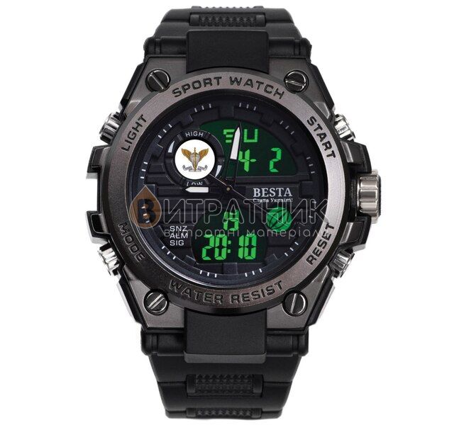 Функции:Секундомер, будильник, подсветка, дата, день недели, месяц, второе время (Dual Time)