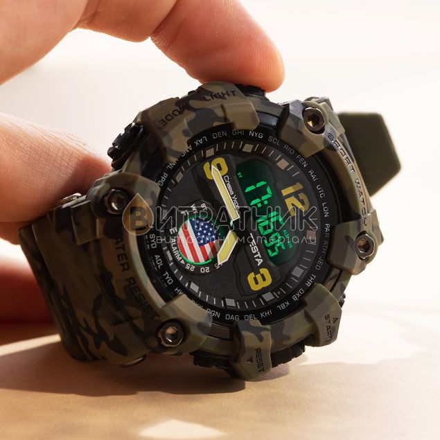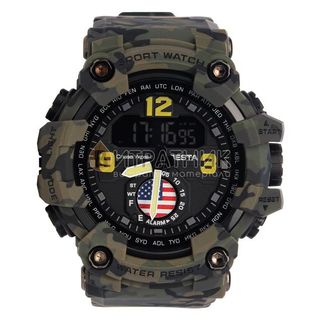 Функции:Герб ВСУ, секундомер, будильник, подсветка, дата, день недели, месяц, второе время (Dual Time)