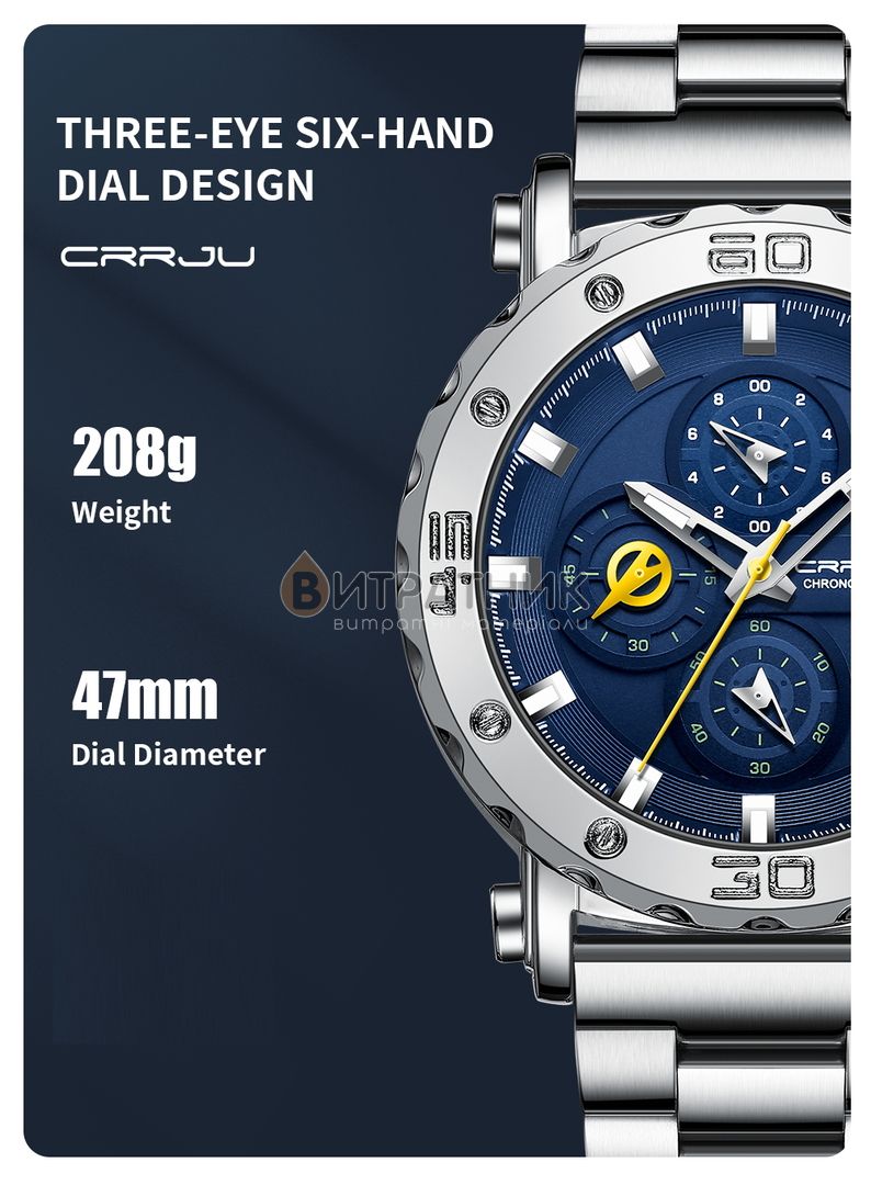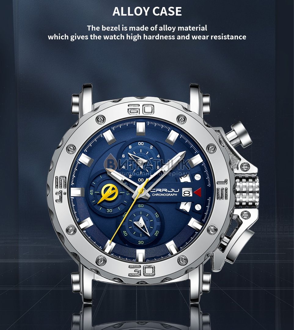 Стильные мужские часы Crrju Brutal отличаются оригинальным дизайном. Прямые линии, острые края и эксклюзивно сделанный корпус придают изделию роскошный вид. Благодаря такому аксессуару у вас появится уникальная возможность удачно расставить акценты в созданном вами образе. Вам стоит лишь поднять руку, чтобы что-то показать, как глаза всех присутствующих будут прикованы к вашим элегантным часам.