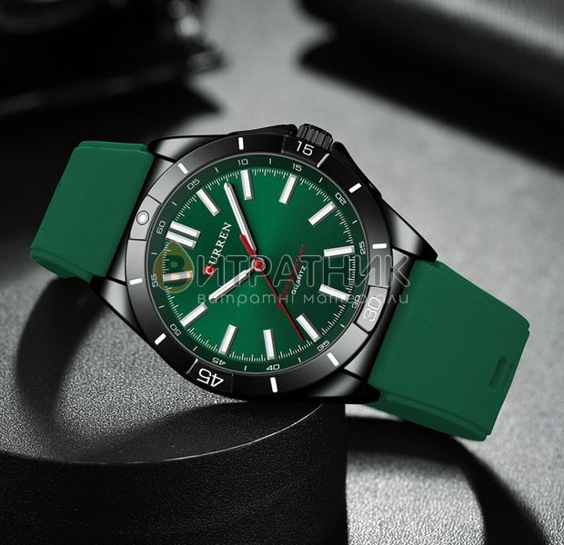 Стильные мужские часы Curren West Green отличаются оригинальным дизайном. Прямые линии, острые края и эксклюзивно сделанный корпус придают изделию роскошный вид. Благодаря такому аксессуару у вас появится уникальная возможность удачно расставить акценты в созданном вами образе. Вам стоит лишь поднять руку, чтобы что-то показать, как глаза всех присутствующих будут прикованы к вашим элегантным часам.