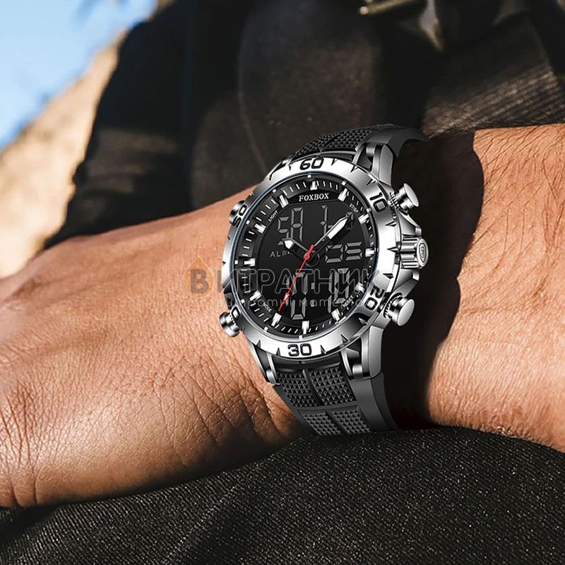 Дизайнеры бренда Foxbox уделили особое внимание созданию циферблата. Цвет модели подобран достаточно скрупулезно, чтобы индексы/цифры отображались на нем максимально четко и контрастно. Корпус изготовлен из прочного и износостойкого материала, который под влиянием неблагоприятных факторов не теряет своих свойств. Это значит, что вы можете его носить столько, сколько пожелаете. Аксессуар дополнен качественным ремешком с регулируемой классической застежкой. Он приятен на ощупь, а при длительном ношении не деформируется и не портится. Учитывая такие характеристики, вам просто необходимо купить мужские часы Foxbox Aero, чтобы оставаться в тренде, а главное, всегда подчеркивать авторитетность своей персоны в любом обществе.