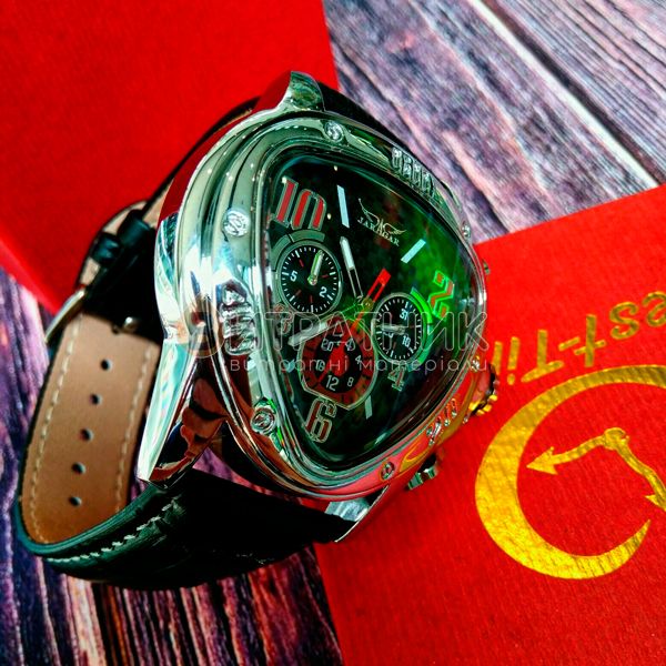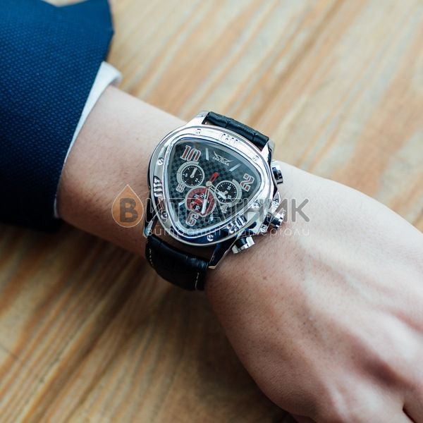 Стильные мужские часы Jaragar Tripple отличаются оригинальным дизайном. Прямые линии, острые края и эксклюзивно сделанный корпус придают изделию роскошный вид. Благодаря такому аксессуару у вас появится уникальная возможность удачно расставить акценты в созданном вами образе. Вам стоит лишь поднять руку, чтобы что-то показать, как глаза всех присутствующих будут прикованы к вашим элегантным часам.