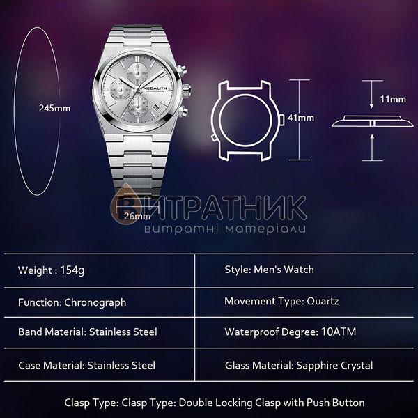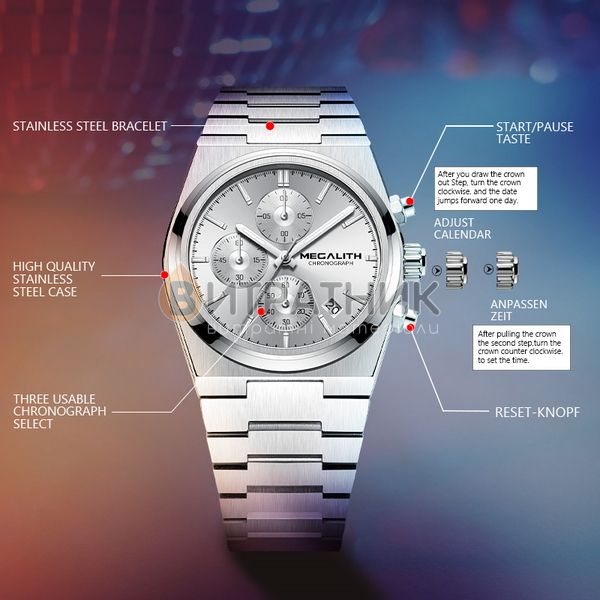 Стильные мужские часы MegaLith Basa 10Bar отличаются оригинальным дизайном. Прямые линии, острые края и эксклюзивно сделанный корпус придают изделию роскошный вид. Благодаря такому аксессуару у вас появится уникальная возможность удачно расставить акценты в созданном вами образе. Вам стоит лишь поднять руку, чтобы что-то показать, как глаза всех присутствующих будут прикованы к вашим элегантным часам.