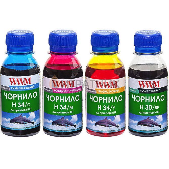 Комплект чернил WWM для HP №21/121/131 4х100г BP/C/M/Y Пигментное/Водорастворимое (H30/34SET-2)