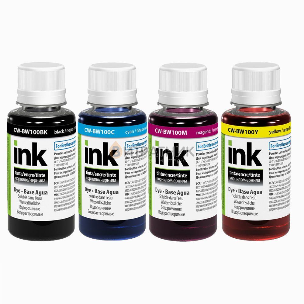 - Комплект чернил ColorWay для Brother Universal BK/C/M/Y Dye-based 4 x 100 ml (CW-BW100SET01)