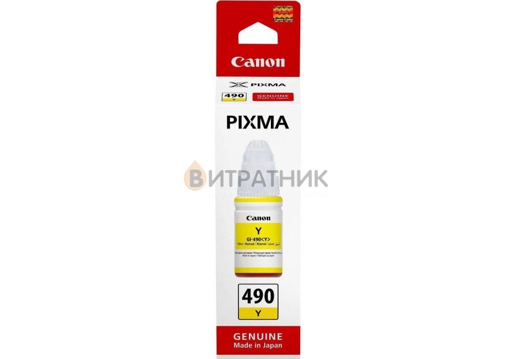 - Контейнер с чернилами Canon для Pixma G1400/G2400/G3400 GI-490Y 490 70мл Yellow (0666C001)