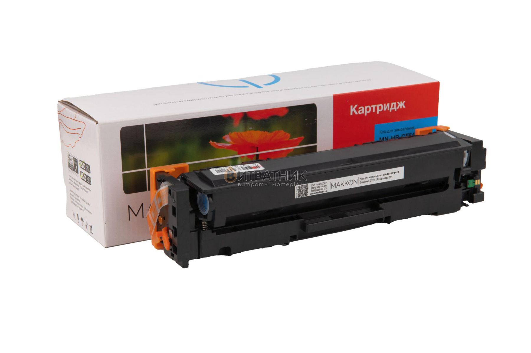 Совместимый картридж MAKKON совместимый аналог HP CF541A (203A), Canon 054 cyan