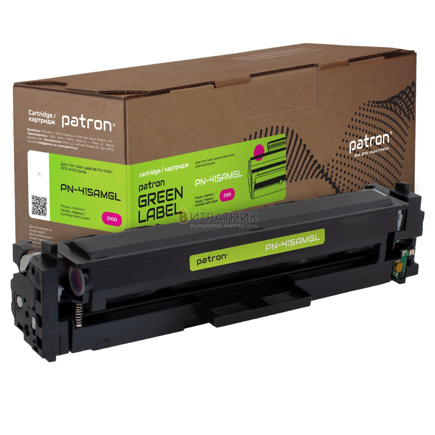 Совместимый Картридж HP 415A (W2033A), версия микропрограммы 002.2208А, Green Label, пурпурный Patron (PN-415AMGL)