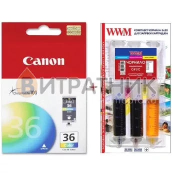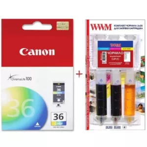 - Картридж Canon Pixma iP100 CLI-36C + Заправочный набор Color (Set36-inkC)