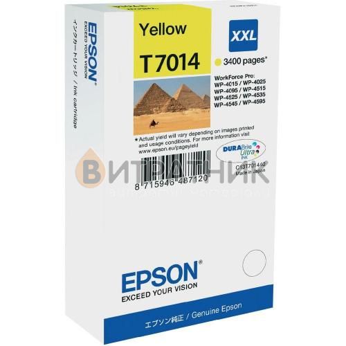 Картридж T701440 XXL желтый Epson (C13T70144010) выпускается компанией Epson, которая для создания таких расходных материалов использует собственное производство, разработки и технологии.