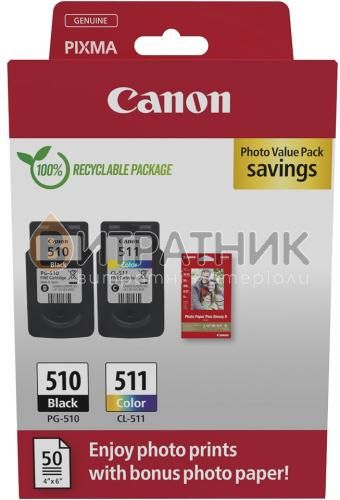 Комплект картридж PG-510 черный + картридж CL-511 цветная + бумага 50 л Canon (2970B010/2970B017)