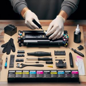 - Защитные перчатки и маску, чтобы предотвратить вдыхание тонера.