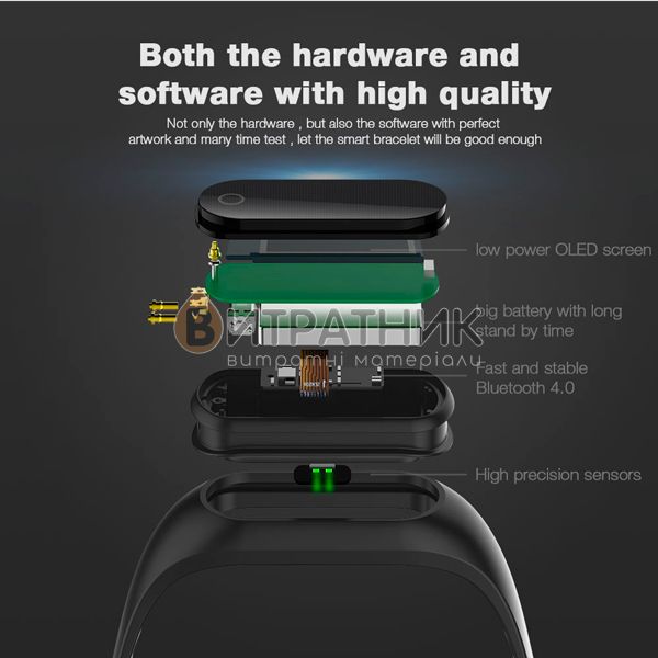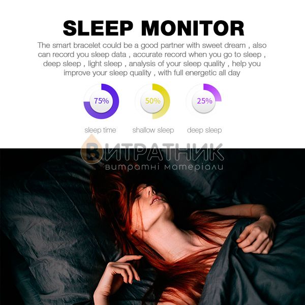 Особливості:Показывает время. счетчик калорий защита от воды и пыли. отслеживание сна. педометр. шагомер. измерение давления. количества вдохов в минуту. уровня усталости.