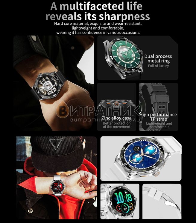 Особливості:Режими спортивних ігор та тренувань (футбол, бадмінтон, велосипед тощо); Вимірювання пульсу та інших показників; Режим бігу та тренажерного залу; Розширений фітнес – трекер; Функція "Розумний сон+"; Синхронізація з мобільним пристроєм на Android або iOS; Вимірювання рівня оксигену; Режим нагадувань; Дистанційне керування камерою; Будильник; Годинник; Педометр; Секундомір; Потужна батарея; Оповіщення про всі події телефону; Управління заставками екрана; Управління музичним програвачем телефону; Процесор нового покоління.