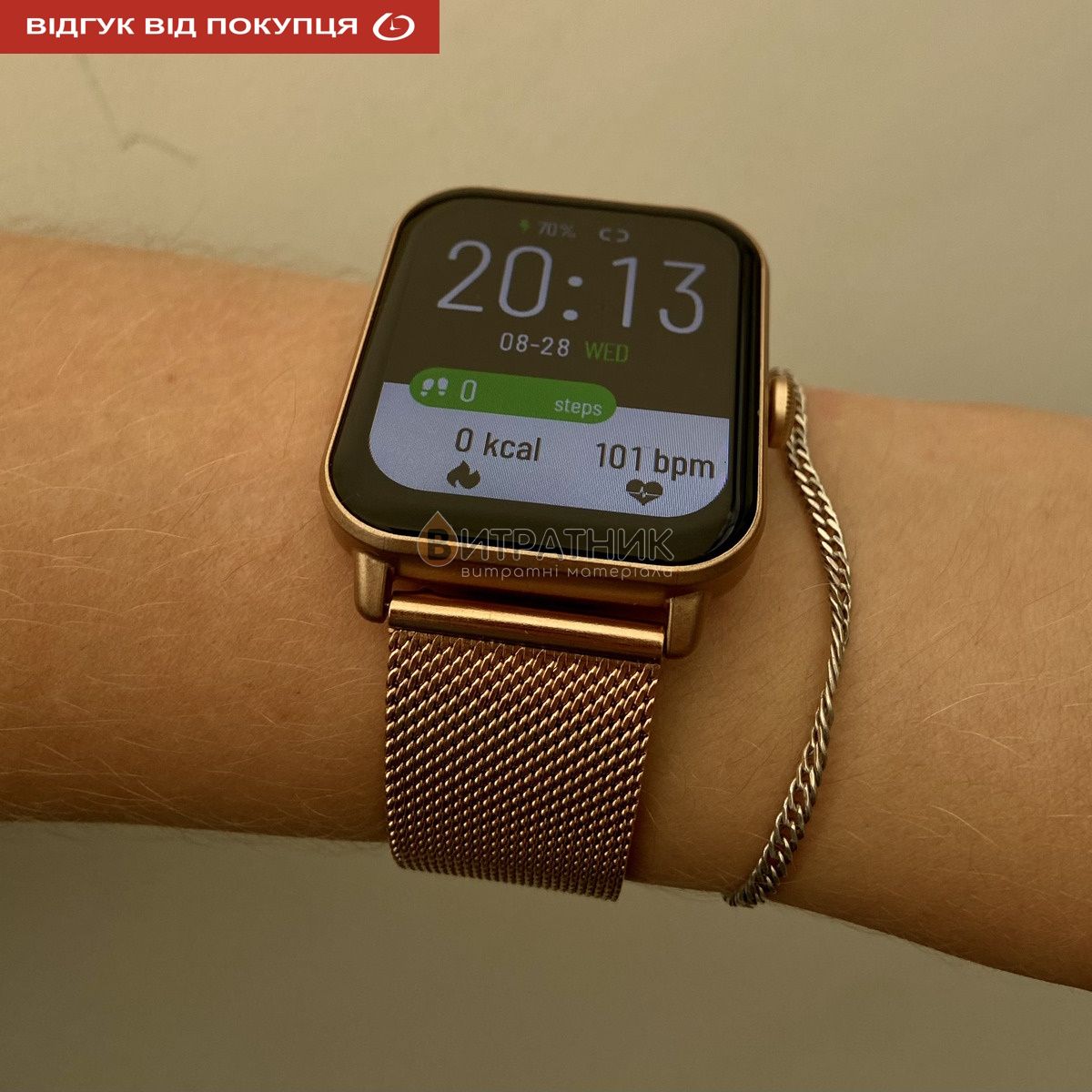 Smart Eva - сучасний смарт-годинник від UWatch з елегантним дизайном. Оснащений процесором Realtek 8763EWE та 1.83-дюймовим дисплеєм. Функції включають вимірювання пульсу, рівня кисню в крові, жіночий календар, моніторинг сну, 100+ спортивних тренувань, дистанційне керування камерою, відображення погоди, будильник і повідомлення про дзвінки й повідомлення.В комплекті йде змінний ремінець та офіційна гарантія на 12 місяців.