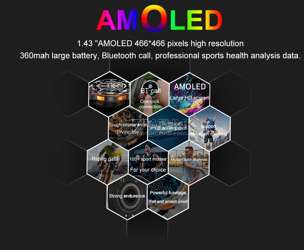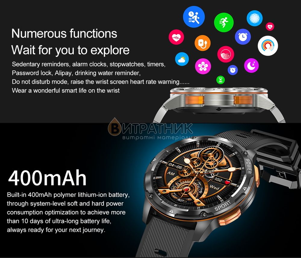 Особливості:Режим спортивних ігор; Функція Антилост; Режим бігу та тренажерного залу; Розширений фітнес – трекер; Функція "Розумний сон +"; Синхронізація з мобільним пристроєм на Android або iOS за допомогою Bluetooth з'єднання, що відкриває доступ до більшості функцій годинника; Відображення погоди; Режим нагадувань; Дистанційне керування камерою; Будильник; Захист від бризок та пилу; Секундомір; Процесор нового покоління; Управління плеєром телефону; Новітній АMOLED екран; Відображення дзвінків та повідомлень телефону.
