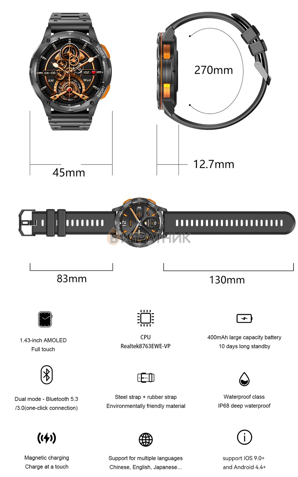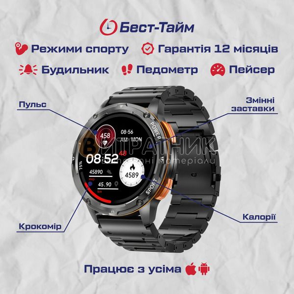 З інноваційним розумним годинником Smart Kopter Steel Black кожний день може назавжди змінити ваше життя, адже з його допомогою ви матимете змогу створити достойні умови для нових досягнень і прагнень. Розширені функціональні можливості моделі зроблять вас максимально мобільними. Ви зможете дзвонити, надсилати повідомлення, моніторити останні новини, розважатися та слідкувати за станом свого здоров’я без зайвих зусиль. Лише піднесіть руку до себе, як це все стане можливим для вас у кілька кліків. Представлена на сайті нашого інтернет-магазину модель стане для вас незамінним помічником як в роботі, так і у подорожі. Займайтеся домашніми справами максимально продуктивно, а відпочивайте в горах чи на морі у своє задоволення.