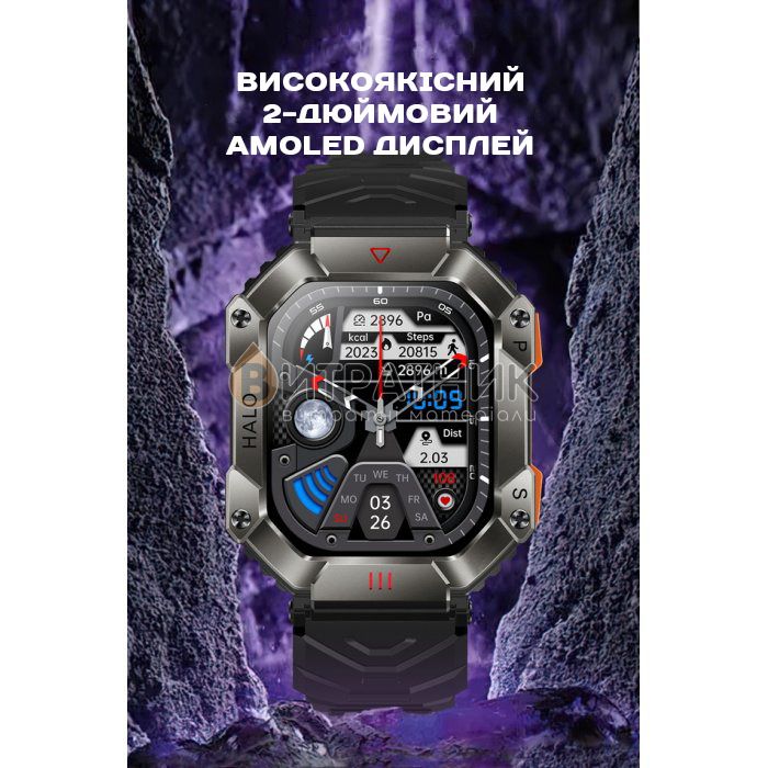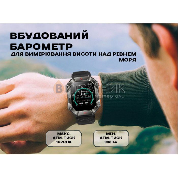 Особливості:Вимірювання пульсу/тиску/кисню в крові; Режим спортивних ігор; Функція Антилост; Режим бігу та тренажерного залу; Розширений фітнес – трекер; Функція "Розумний сон +"; Синхронізація з мобільним пристроєм на системі Android або iOS за допомогою Bluetooth з'єднання; Потужна батарея; Режим нагадувань; Дистанційне керування камерою; Будильник; Захист від бризок та пилу; Секундомір; Процесор нового покоління; Керування програвачем телефону; Ретиновий 2-дюймовий екран; Альтиметр, барометр; Електронний компас.