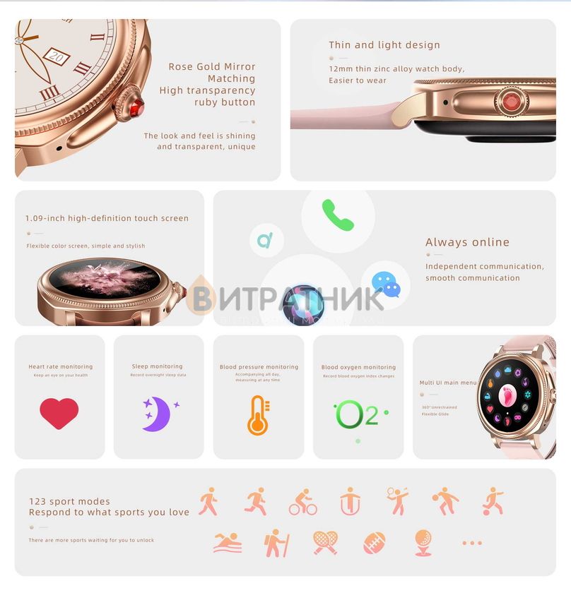 Завдяки сучасному та елегантному дизайнові ви можете доповнювати смартгодинником будь-який стиль одягу. Ідеально підібраний колір аксесуара вписується в різні кольорові гами модних тенденцій, зокрема спокійних та контрастних тонів. До того ж дизайнерське оформлення виробу додає йому універсальності. Він стає актуальний як для повсякденних справ, так і для святкових подій та урочистих заходів. Купити смартгодинник нового покоління з багатим функціоналом варто кожному, особливо якщо ви цінуєте свій час та продуктивність.