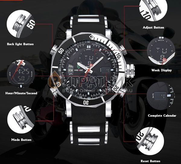 Оригінальний спортивний годинник Weide Kasta II спеціально створений для людей, які ведуть активний спосіб життя та слідкують за своїм фізичним станом. Тож якщо адреналін тече у вашій крові кожного дня та вам не байдуже, як ви виглядаєте, тоді представлена модель саме для вас. Вона відзначається унікальною надійністю годинникового механізму та електронних софтів. Дані виводяться до найменшої одиниці виміру відповідної величини. Інженери бренду Weide подбали про прецизійність розробки та встановлення кожного з елементів складного механізму. Навіть за несприятливих умов (під водою, високо в горах чи у владі стихії) ви почуватиметеся впевнено, адже матимете надійні орієнтири на вашому зап’ясті.