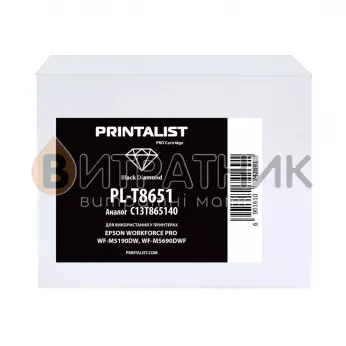 Картридж PRINTALIST для Epson WorkForce Pro WF-M5690/WF-M5190 аналог C13T865140 Black (PL-T8651)