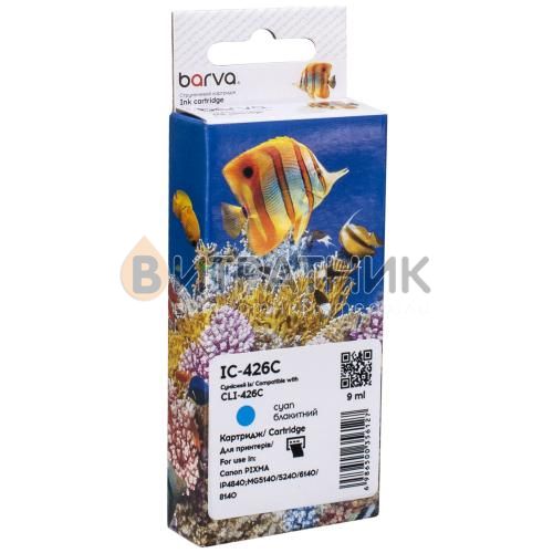 Картридж сумісний Canon CLI-426C (4557B001) 650 арк, блакитний Barva (IC-426C) випускається компанією Barva, яка для створення таких витратних матеріалів використовує власне виробництво, розробки та технології.