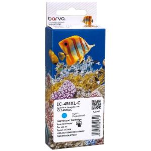 Картридж сумісний Canon CLI-451C XL (6473B001) 665 арк, синій Barva (IC-451XL-C) випускається компанією Barva, яка для створення таких витратних матеріалів використовує власне виробництво, розробки та технології.
