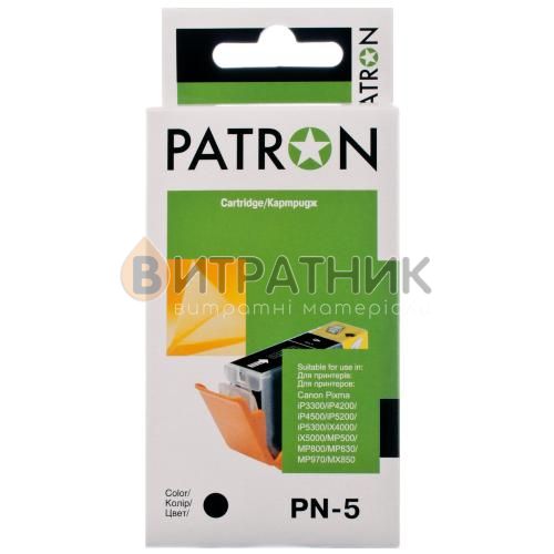 Картридж сумісний Canon PGI-5PGBK (0628B024) 500 арк, чорний Patron (PN-5BK) випускається компанією Patron, яка для створення таких витратних матеріалів використовує власне виробництво, розробки та технології.