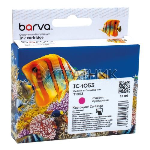 Картридж сумісний Epson T0733/T1053 (C13T10534A10) 360 арк, пурпуровий Barva (IC-1053) випускається компанією Barva, яка для створення таких витратних матеріалів використовує власне виробництво, розробки та технології.