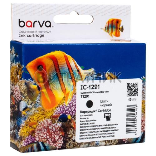 Картридж сумісний Epson T1291 (C13T12914011/C13T12914012) 440 арк, чорний Barva (IC-1291) випускається компанією Barva, яка для створення таких витратних матеріалів використовує власне виробництво, розробки та технології.