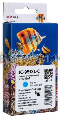 - Картридж сумісний HP 951XL (CN046AE/CN050AE) 1500 арк, блакитний Barva (IC-951XL-C)