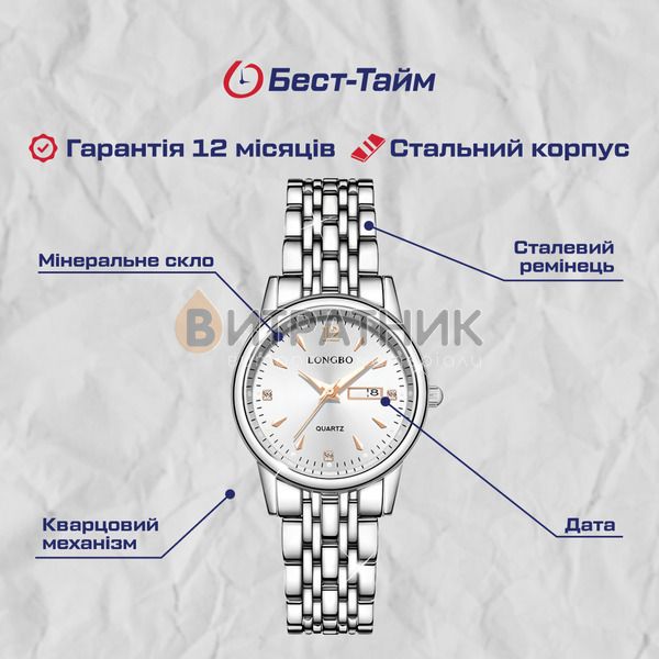 Найкраща модель жіночого годинника Longbo One дозволить вам доречно підкреслити свою вишуканість, елегантність та неперевершений стиль. Дизайн аксесуара настільки впізнаваний, що вам позаздрить кожна світська левиця. Представлена модель ідеально пасуватиме до вашого образу, хоч би яким він не був: класика, кежуал, мілітарі чи гранж. В одному випадку годинник гармонійно зливатиметься з луком, а в іншому — разюче виділятиметься. Як результат, ваше зап’ястя з таким оригінальним аксесуаром завжди буде виглядати витонченим. Жіночий годинник Longbo One створений для того, щоб привертати увагу чоловіків та попутно викликати заздрощі конкуренток.