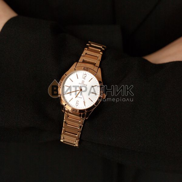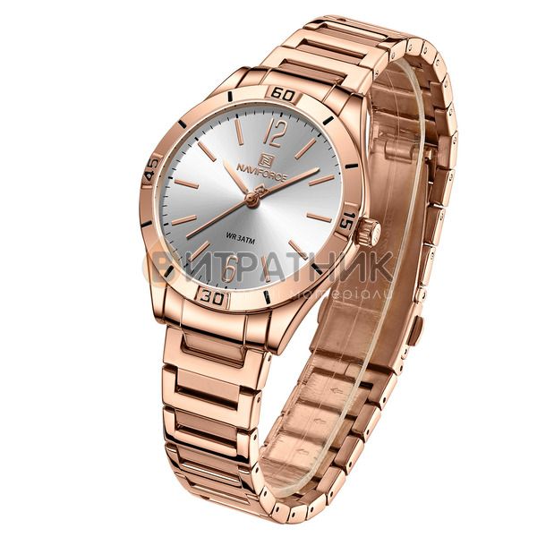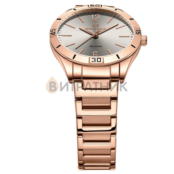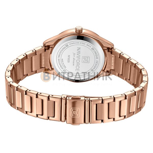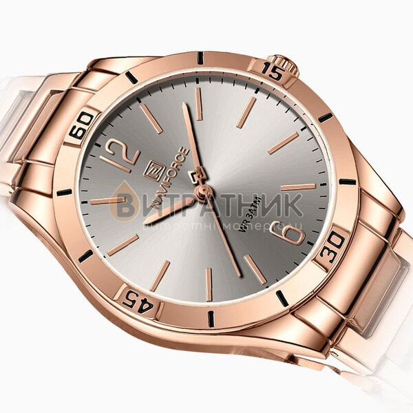 Функціональні можливості моделі дозволять вам виконувати заплановані справи швидко, вчасно, а головне, максимально продуктивно. Незрівнянний циферблат захищений ударостійким склом, тому ви можете залишатися активною з годинником на руці 24/7. Еластичний ремінець-браслет досить зручний у використанні. Навіть після цілого дня носіння ви не відчуватимете важкості у кисті, при цьому вас не буде турбувати подразнення. Талановиті спеціалісти бренду Naviforce подбали про ваш комфорт і продуктивність. За точність показування часу відповідає якісний та прецизійно зроблений годинниковий механізм. Кожна хвилина проведена з аксесуаром на руці приноситиме вам лише задоволення. Можливість купити жіночий годинник Naviforce Malibu за доступною ціною надає наш інтернет-магазин.